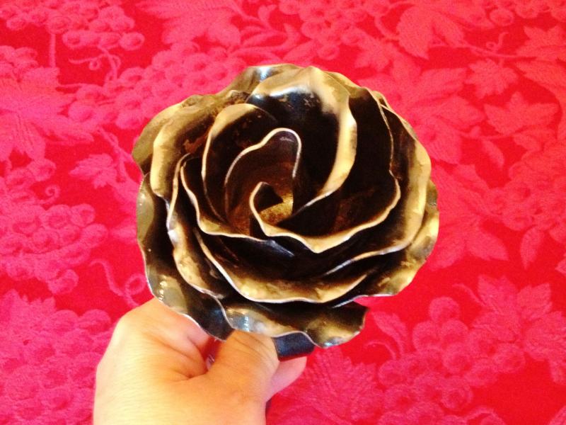 It's that time of year again!We have been making a bunch of carbon steel roses in our forge! These are also great for just giving to the person you love, Weddings, Anniversaries, Birthdays, appologies, and more!! A great gift idea, these are each hand forged and individual, they coated with a clear lacquer to prevent rust, and rose scented oil is added to make them smell like real roses!! They are sturdy, wonderful art peaces and decorations, never need water and like your love, will never die! Give the most wonderful gift of all, for Birthdays or any day... a Hand Forged Scented Rose that will last forever!