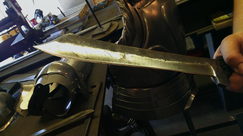 This 18 inch blade was made several years ago, and has been put to many good uses! Made of 5160 Spring Steel, and can chop a zombie's head off in seconds!!